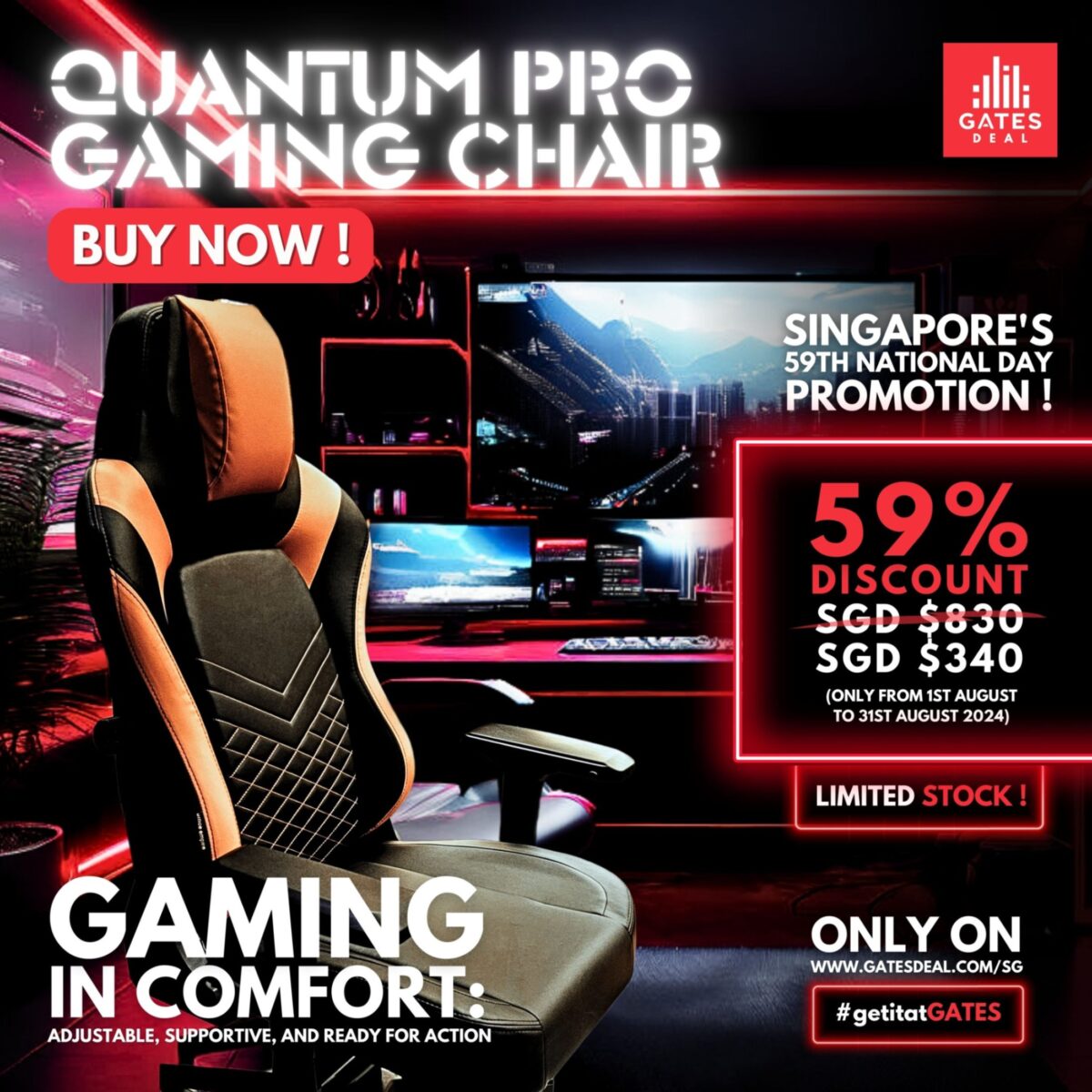 – Self Collection: The Quantum Pro Gaming Chair is available for self-collection.